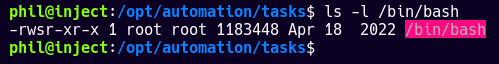 Al parecer hay un script con privilegios que se esta ejecutando en el directorio /opt/automation/tasks cada cierto tiempo, veamos si podemos aprovecharnos de eso.